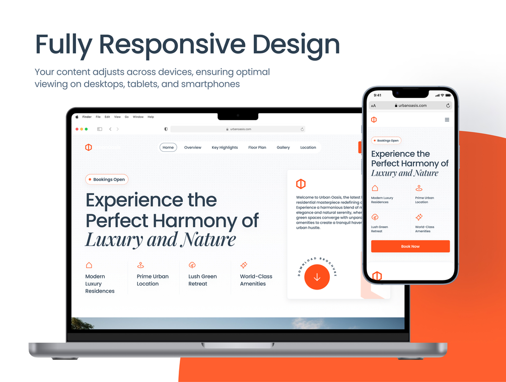 - 9 Well-Organized Sections: Each section is structured to highlight key property features, amenities, and call-to-action elements, making navigation smooth and intuitive.