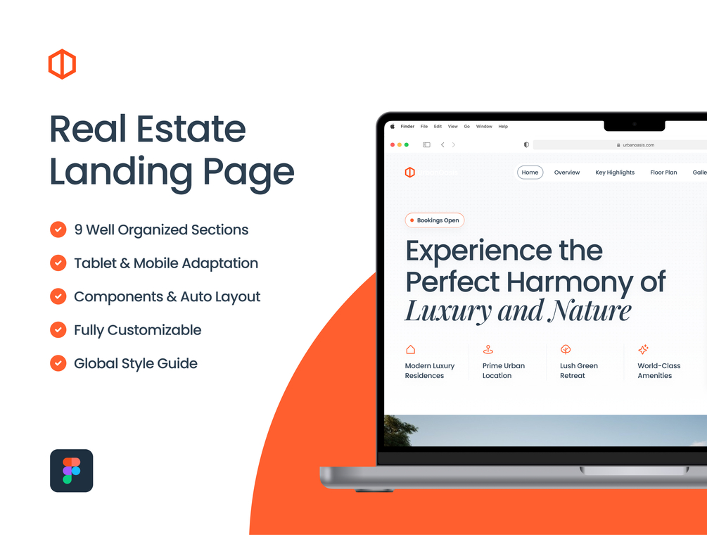 Real Estate Landing Page Design: Elevate your real estate business with this modern and fully customizable UI kit, perfect for creating stunning landing pages. This template is designed to showcase properties with a clean, professional layout that captivates potential clients.